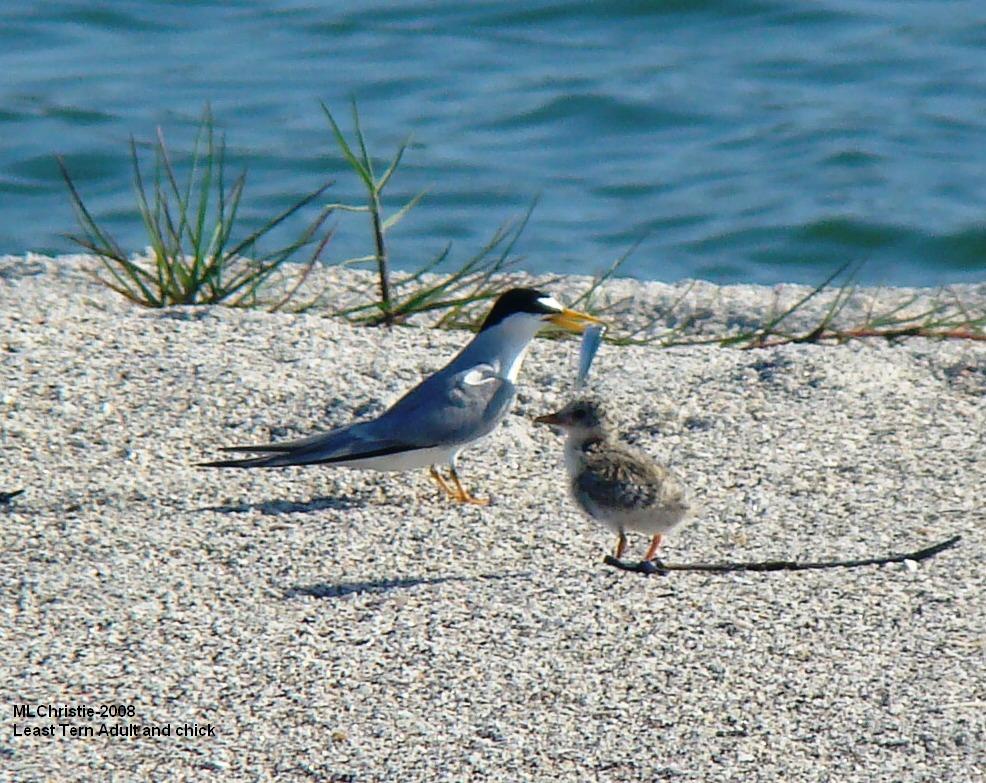 A least tern feeds its chick. Photo courtesy of Charlotte County Natural Resources Division, Environmental & Extension Services.