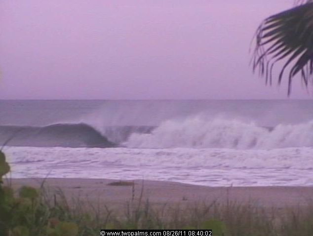 Friday morning has revealed better conditions for surfing Irene’s swell on the Florida Atlantic coast. This photo from the Tw0 Palms cam in Cape Canaveral.