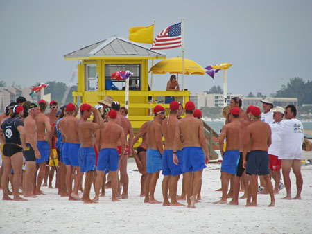 The Southeast Regional Lifeguard Competition was held at Siesta Key Public Beach on July 14 and 15, 2008. I dropped by on Tuesday afternoon in time for the surf boat race and a foot relay race. I wish I’d been able to come down earlier, but the weather wasn’t so great and I was hoping for a break in the clouds and rain later in the afternoon. The opposite happened, but I still managed to take some photos.
