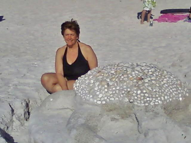Here’s another cell phone photo update from lifeguard Curtis Mcfee from Anna Maria Island. His sister has sculpted a sea turtle in the beach sand. Note the turtle “shell.”