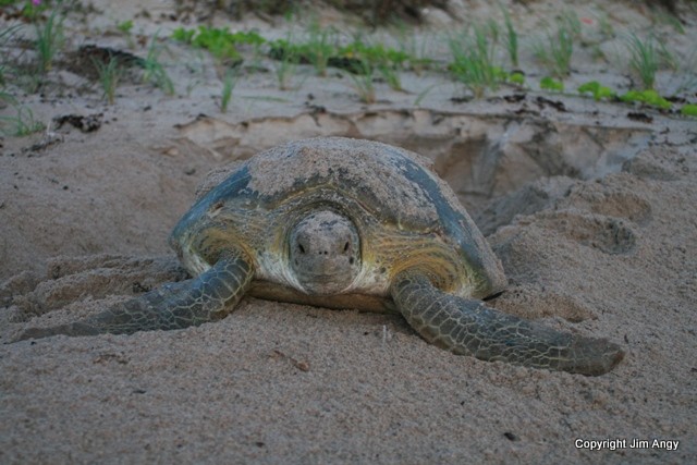 The way it usually works is you’ll meet with a group at a location where you’ll watch an educational presentation by a turtle expert. Then, at the right time, you’ll be led out onto the beach to look for a turtle. Some of the walks actually send scouts out to find an egg-laying turtle while you are enjoying the presentation. Always go with a guide. Don’t try to go out and look for turtles on your own. The guides are licensed by the state to approach turtles and they know how to do it without scaring them off the nest.